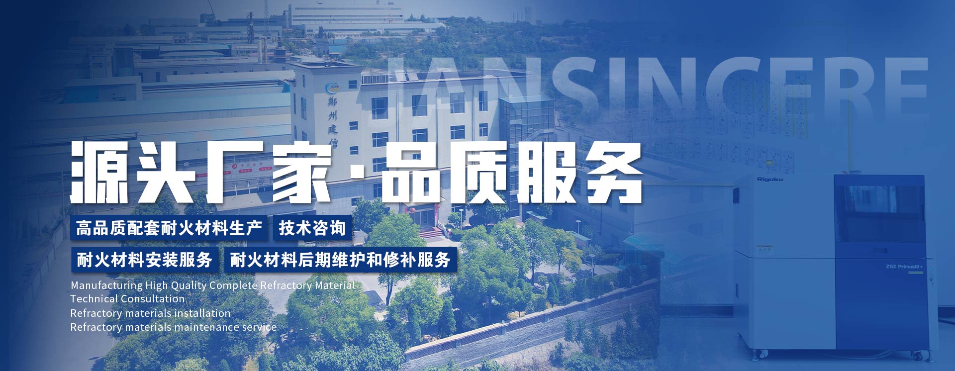 鄭州建信耐火材料成套有限公司總部位于耐材之鄉-河南省新密市,是一家集耐材產品研發、生產、銷售、施工為一體的高新技術企業。公司現有員工350人。鄭州建信耐材下設三個生產分廠,一個專業窯爐砌筑工程公司,構建為全方位的一體化架構體系,為炭素行業,建材行業,鋼鐵行業,有色金屬冶煉行業和環保危廢行業提供涵蓋整套耐火材料設計和生產、現場施工砌筑及后期維護的專業服務。建信耐材先后參與起草國家建材及行業標準:《高鋁抗剝落磚、系列耐堿磚及系列硅莫磚》、《水泥回轉窯協同處置用耐火材料抗侵蝕實驗方法》、《耐火材料及砌筑使用規程》和《石灰窯砌筑技術條件》。近年來先后榮獲“國家科技型企業”、“高新技術企業”、“河南省綠色工廠”、河南省“專精特新”企業、“環??冃級”企業、“河南省著名商標”、“市長質量獎”等殊榮......